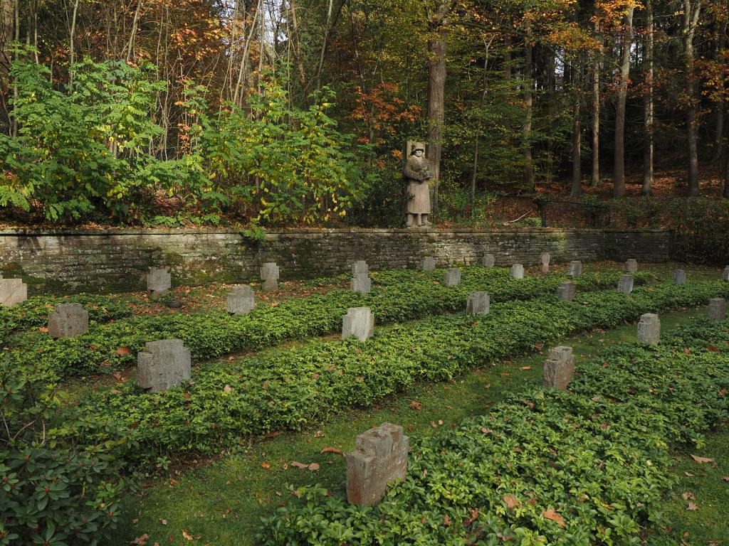 Ein Soldatenfriedhof in der Nähe des Hürtgenwaldes. Die Russen in Langwasser bekamen zu 500 je ein Grab, hier liegen pro Grabstein zwei deutsche Soldaten. Weil auf dem alten Friedhof Platzmangel herrschte, hat man die Soldaten „zusammengelegt“, sie konnten sich ja nicht mehr beschweren.