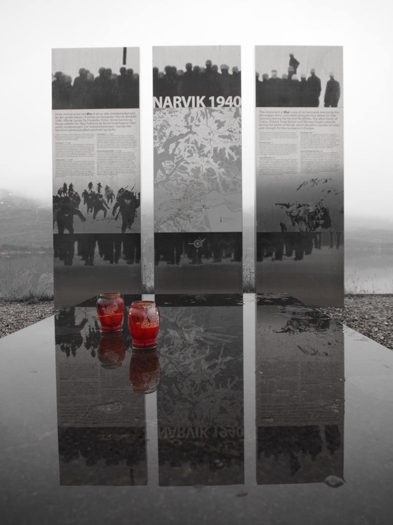 Solche Denkmäler sind da viel schöner. Die Schlacht von Narvik 1940. Die britischen Invasionstruppen haben die deutschen Invasionstruppen geschlagen und mussten dann nur leider daheim eingreifen, so dass die Deutschen dann doch gewonnen haben. Alles Helden. Ganz sicher. Warum da zwei rote Totenleuchten stehen? Tjaaaaaa ….