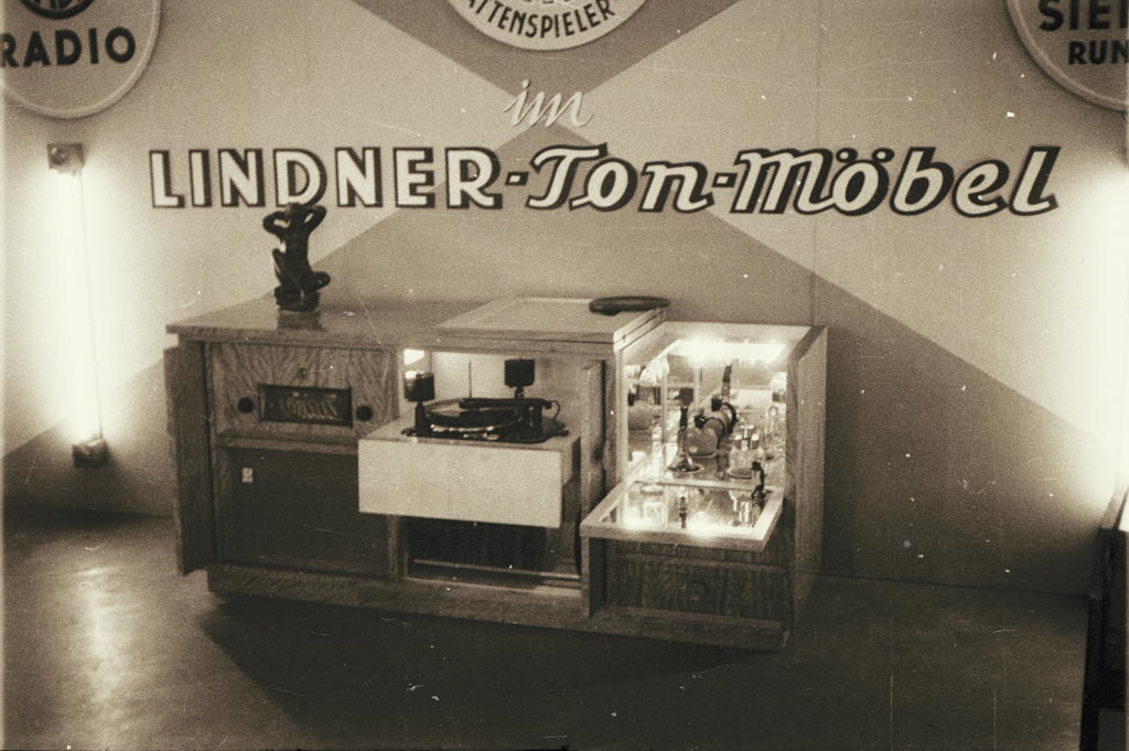 Titelbild: Eine Radiomesse von 1952. Damals war der Knüller die Hausbar im Phonomöbel, das über einen Plattenwechsler verfügen musste.