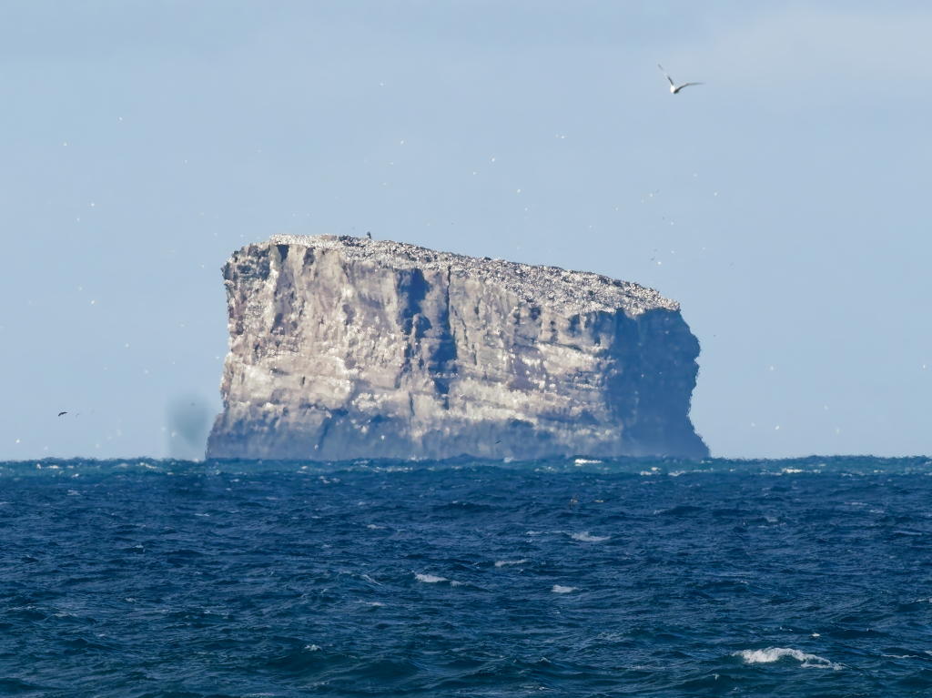 Das ist nicht Eldey, sondern „Karlinn der Troll“ genannt. Ich habe vor einem Jahr mal kurz ein Bild von der Insel gezeigt und auch die Story vom Riesenalk erzählt. Auf Eldey (weiiit draußen) brüten Basstölpel. Ziemlich viele.