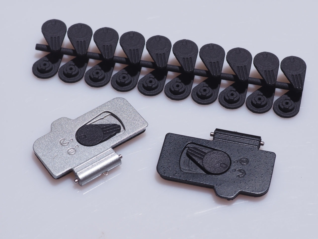 Der originale Batteriefachdeckel der E-M5II ist neu nirgendwo mehr zu bekommen. Da der Kunststoff-Entriegelungshebel des Deckels aber die fatale Neigung hat, abzureißen, wenn man aus Versehen am falschen Ende des Hebels schiebt, oder wenn das Plastik gealtert ist oder wenn er schlechte Laune hat, gibt es einen gewissen Bedarf.